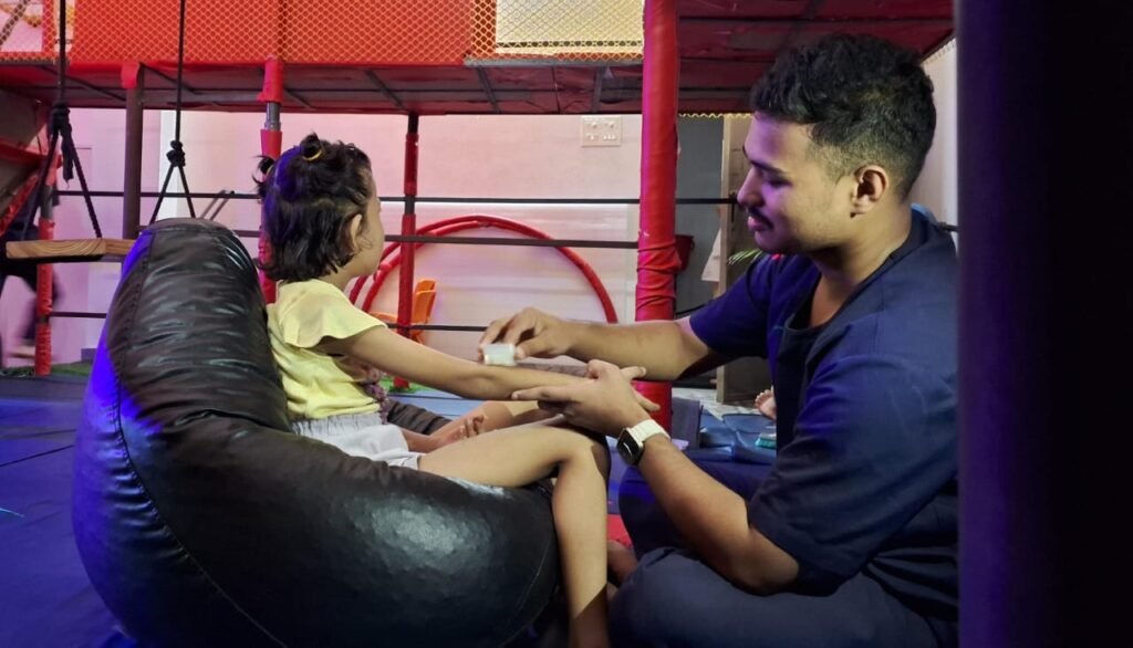 ” My daughter Nisha is born in 2019 May when the COVID was in Peak. When she was almost 2 years, we saw there is no much speech, only dada-nana like that but gradually those speech also detoriated. We were worried hence thought to consult our local pediatrician, He recommended us to visit Bangalore once for a detailed evaluation. There we heard the first time about the word Autism.